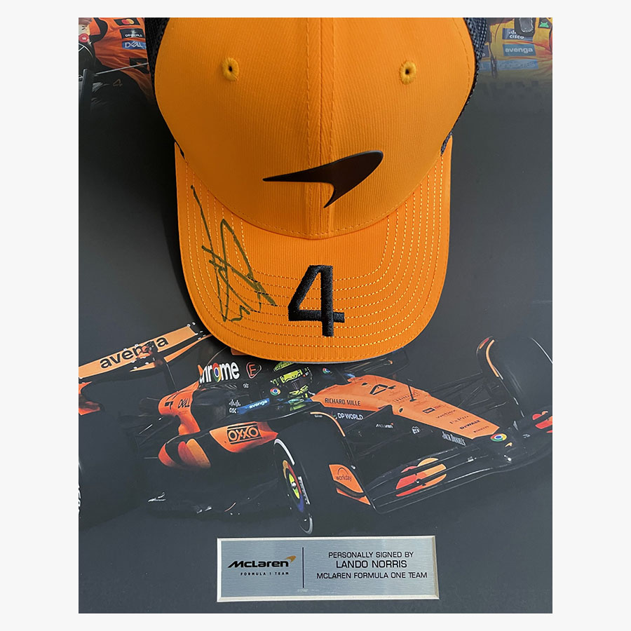 Elite Exclusives offers this beautifully framed 2025 McLaren Lando Norris signed cap framed in our acrylic dome display. Metal descriptive plaque and designed backdrop. This display is of the finest quality and finished to an exacting standard.