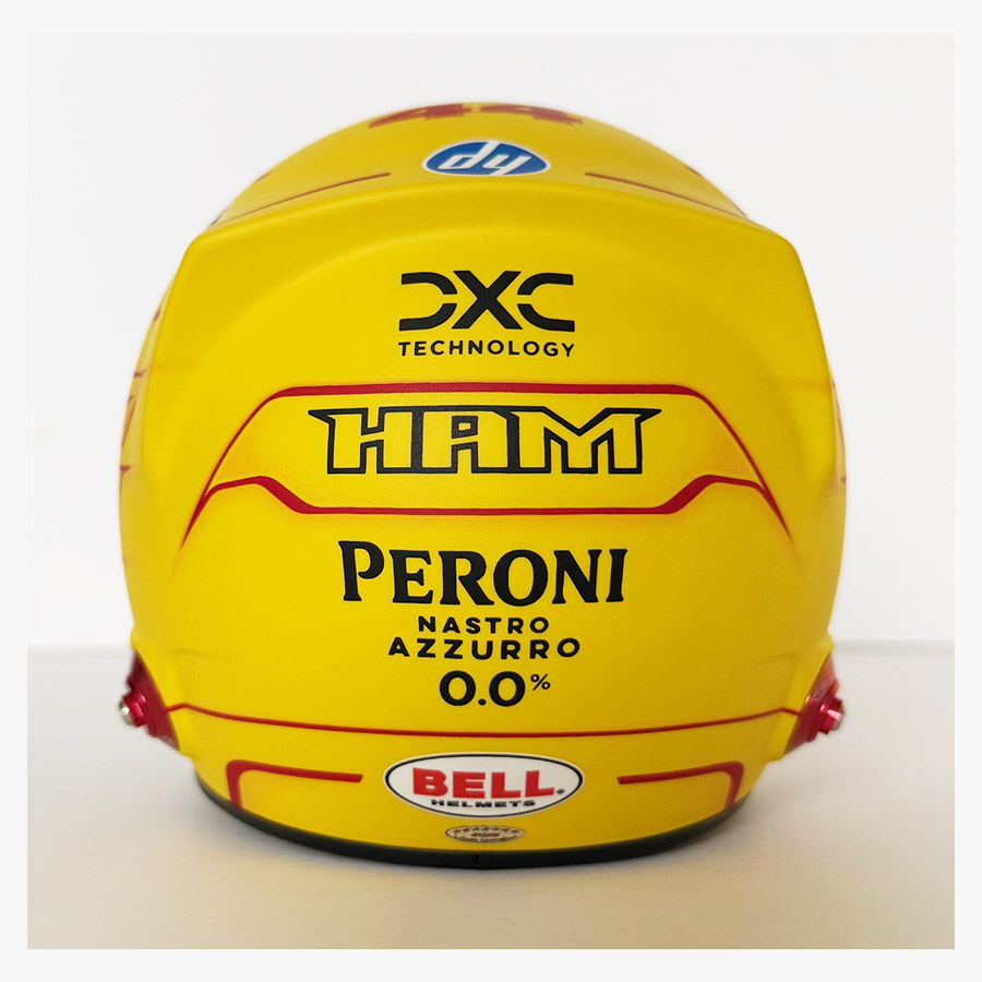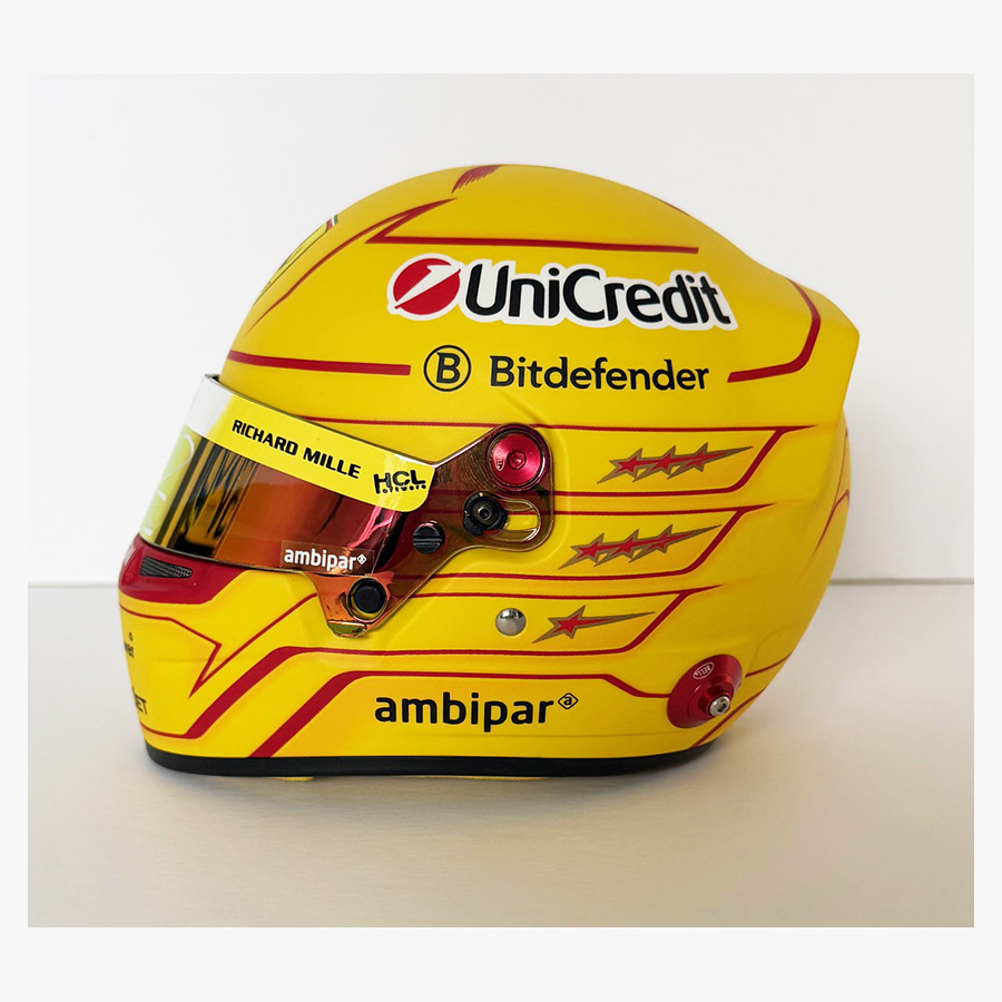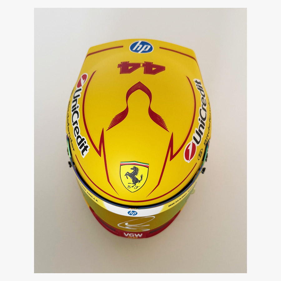 Personally signed 1/2 scale 2025 Ferrari mini helmet by the 7 time F1 World Champion Lewis Hamilton
