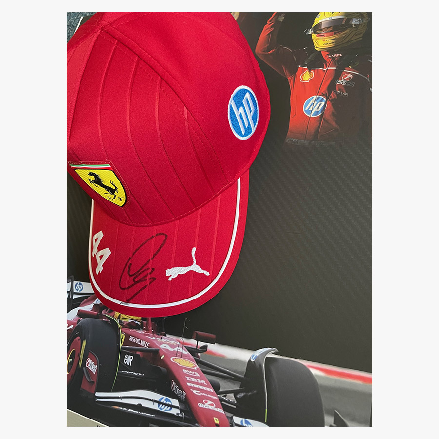 Personally signed LH44 Ferrari F1 cap by the 7 time F1 World Champion Lewis Hamilton.