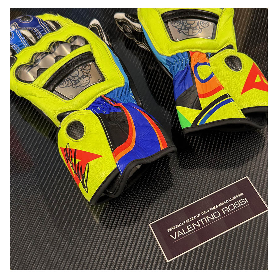 This genuine Dainese replica glove personally signed by the racing legend & 9 time World Champion Valentino Rossi would look stunning in your collection or as a stand alone piece.